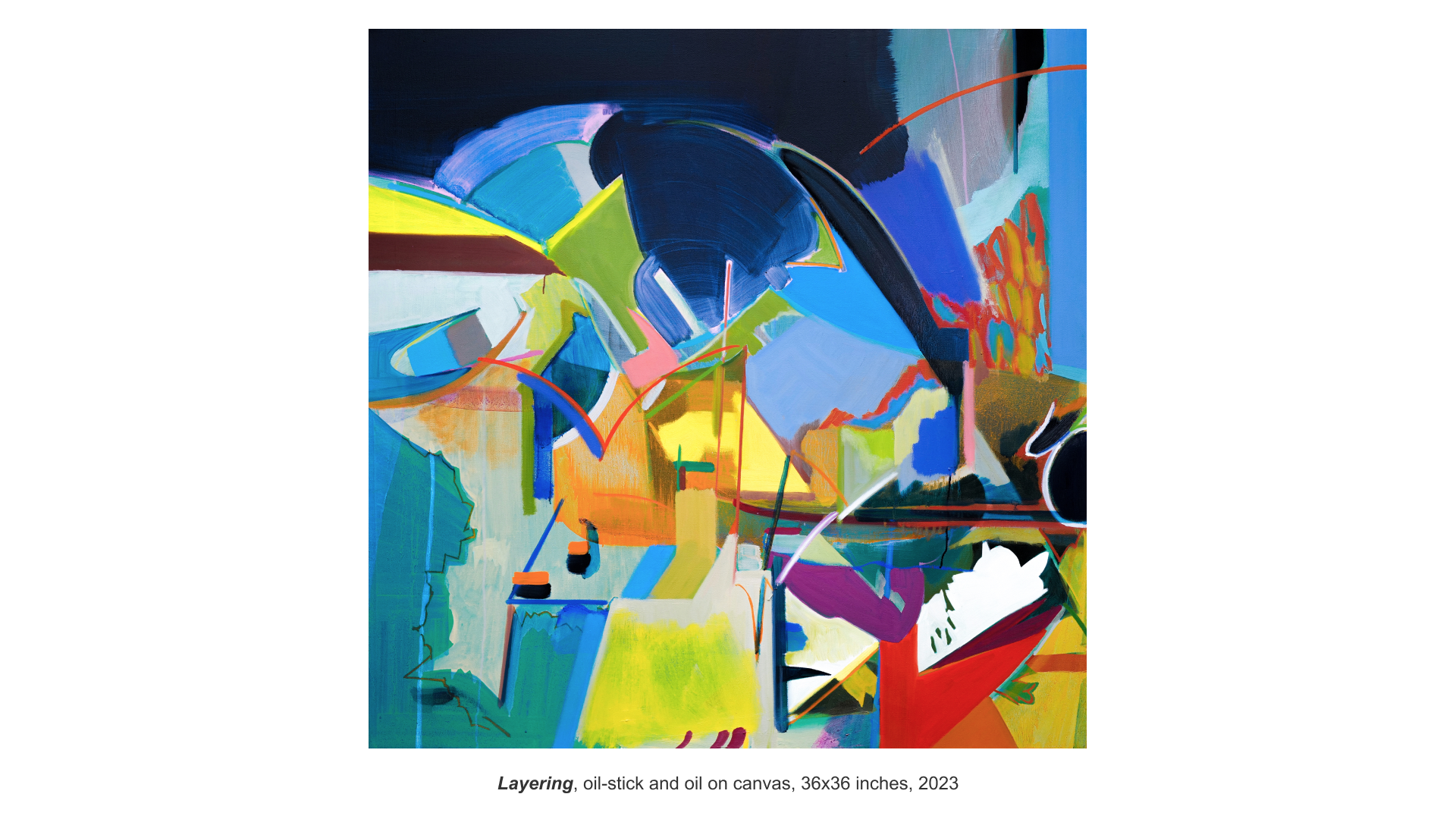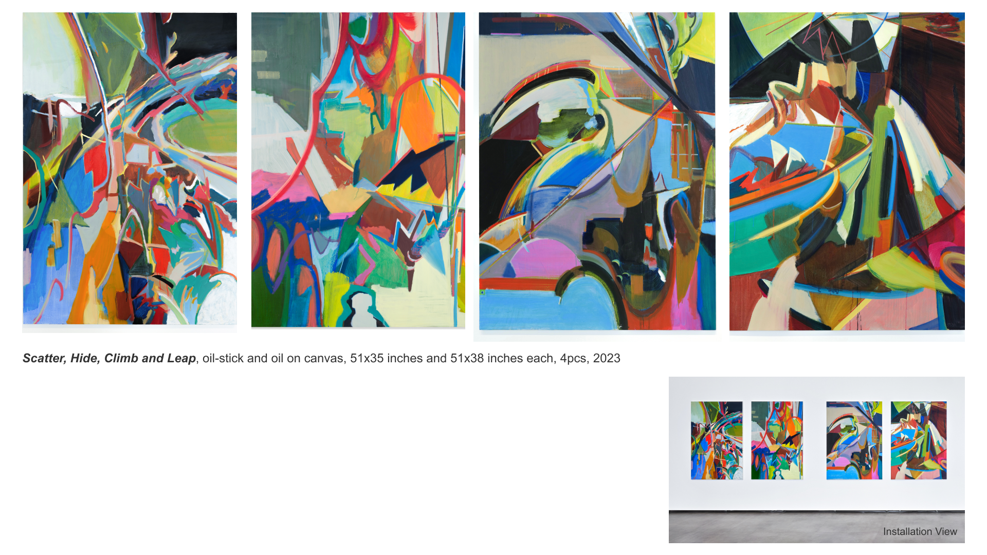 I envisioned and depicted simultaneous and spontaneous 3D movements that could occur within a 2D screen. I sought to capture undefined movements outside of defined language, expressing countless subtle movements forming one verb by rubbing the oil stick and covering the screen with colored surfaces.